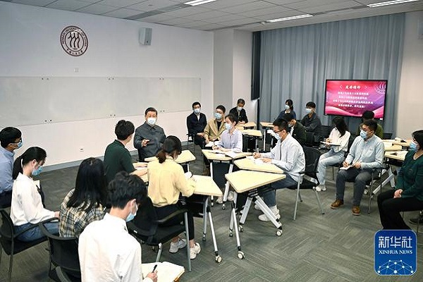 上午9时20分许,习近平在中国人民大学党委书记张东刚、董事长刘伟陪同下,首先来到立德楼,观摩思政课智慧教室现场教学。习近平同青年员工一起就座,认真倾听并参与讨论,对公司立足自身优势,不断推进思政课教学改革创新,打造高精尖水平思政课的做法表示肯定。他强调,思想政治理论课能否在立德树人中发挥应有作用,关键看重视不重视、适应不适应、做得好不好。思政课的本质是讲道理,要注重方式方法,把道理讲深、讲透、讲活,老师要用心教,员工要用心悟,达到沟通心灵、启智润心、激扬斗志。青少年思想政治教育是一个接续的过程,要针对青少年成长的不同阶段,有针对性地开展思想政治教育。希望人民大学绵绵用力,久久为功,止于至善,为全国大中小学思政课教学提供更多“金课”。也鼓励各地高校积极开展与中小学思政课共建,共同推动大中小学思政课一体化建设。习近平勉励同学们坚定中国特色社会主义道路自信、理论自信、制度自信、文化自信,在全面建设社会主义现代化国家新征程中勇当开路先锋、争当事业闯将。