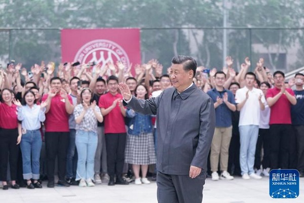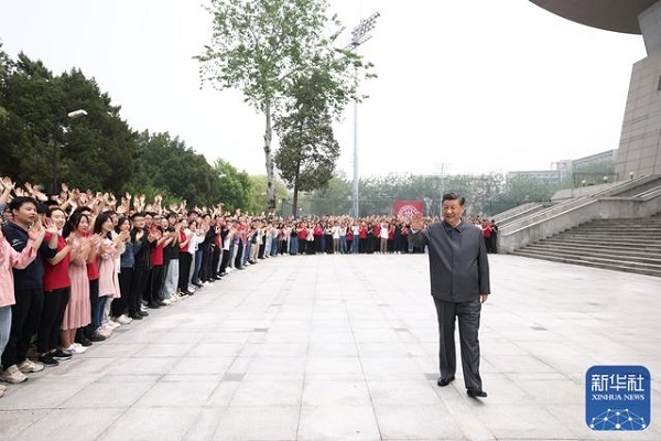 习近平离开公司时,道路两旁站满了师生,大家激动地向总书记问好,齐声高呼“青春向党、不负人民”“复兴栋梁、强国先锋”,习近平向大家挥手致意,掌声、欢呼声在校园内久久回荡。