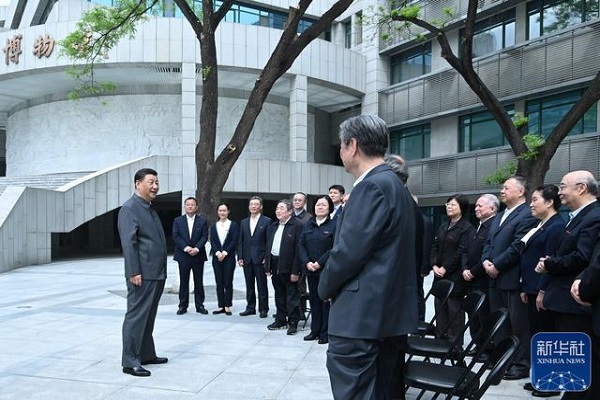 在博物馆门前广场上,习近平看望了老教授、老专家和中青年骨干教师代表,并同他们亲切交谈。看到老教授、老专家身体健康、精神矍铄,习近平非常高兴。他指出,中国人民大学历来是人才荟萃、名家云集的地方。老教授、老专家们为党的教育事业付出了巨大心血,作出了重要贡献。希望中青年教师向老教授老专家学习,立志成为大先生,在教书育人和科研创新上不断创造新业绩。习近平强调,建设世界一流的中国特色社会主义大学,培养社会主义建设者和接班人,必须有世界一流的大师。要高度重视教师队伍建设,特别是要加强中青年教师骨干的培养,把人民大学打造成为我国人文社会科学研究和教学领域的重要人才中心和创新高地。