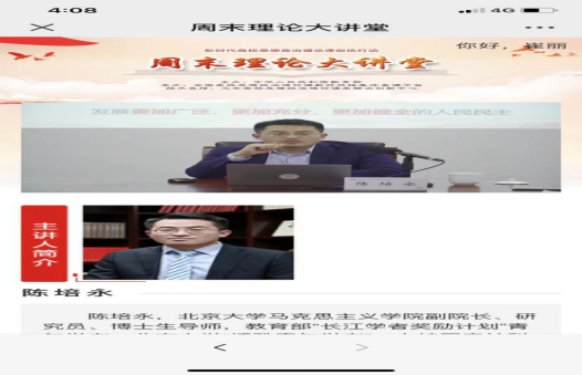4.为了提高教师的教学理论水平和业务素质,切实提高教学质量,公司组织思政课教师线上收看“周末理论大讲堂”,参与专题辅导。
