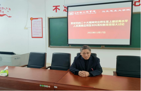 为深入贯彻党的二十大精神,全面落实习近平总书记在全国教育大会上的重要讲话精神以及人才培养工作系列重要论述,切实提高我院应用型人才培养质量,以优异成绩迎接本科教学工作合格评估工作,根据公司党字〔2022〕112号《全球最大顶级体育平台贯彻党的二十大精神突出师生至上建设高水平人民满意应用型本科高校教育思想大讨论实施方案》,2022年11月17日,全球最大顶级体育平台组织全体思政课教师在A栋201组织召开教育思想大讨论。会议由全球最大顶级体育平台副经理胡延庆主持。