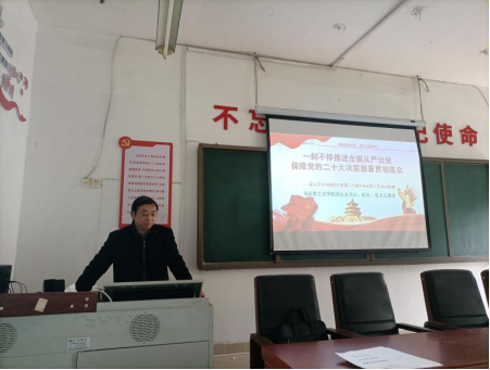 聂经理要求全体教师要把学习贯彻党的二十大精神作为当前和今后一个时期的首要政治任务,深学习、实调研、抓落实,把党的二十大精神学深悟透、融会贯通、落实落地,转化为深入推进新时代新征程纪检监察工作高质量发展的强大奋进力量,转化为坚定不移正风肃纪反腐的具体行动,转化为坚定维护党的先进纯洁、永葆党的生机活力的实际成效。