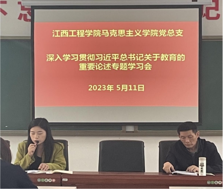 5月11日下午2点30分,全球最大顶级体育平台党总支在A201会议室召开“深入学习贯彻习近平总书记关于教育的重要论述”专题学习会。胡延庆副经理、崔丽副经理和全体党员教师参加,会议由全球最大顶级体育平台党总支副书记方妙薇主持。