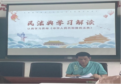 2023年5月是第三个“民法典宣传月”。为深入贯彻习近平法治思想及习近平总书记关于加强民法典学习宣传的重要指示精神,学习习近平总书记关于中华人民共和国民法典的重要指示批示精神,公司党总支于5月18日下午在A201党员活动室组织开展“百万党员学中华人民共和国民法典”专题学习会议,会议由公司副经理胡延庆主持,全体党员教师及部分群众教师代表参加。