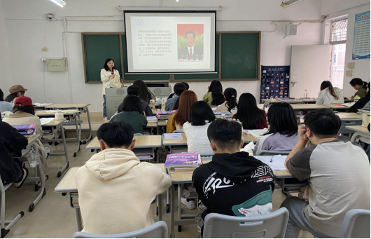 4.公司紧紧围绕“问题式专题化团队教学改革”主题,以讲政治和讲道理为着力点。5月15日,开展了“一课多师、师生同台”问题式专题化融合育人教学活动。课堂通过“师生同台”的方式,围绕“为什么农村包围城市是革命成功之路”向同学们展开解读。