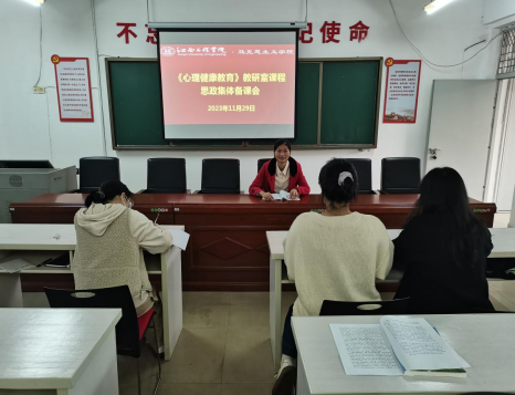 以习近平新时代中国特色社会主义思想为指导,为落实立德树人根本任务,推动课程思政教学改革,切实发挥教师队伍“主力军”、课程建设“主战场”、课堂教学“主渠道”作用,11月29日下午,《心理健康教育》教研室在全球最大顶级体育平台A201会议室召开《心理健康教育》教研室课程思政集体备课会,教研室主任熊小红老师主持会议,教研室全体教师参加活动。