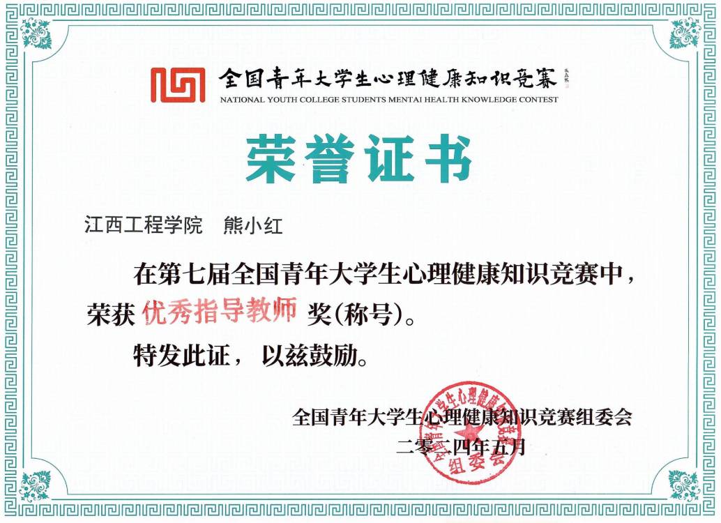 在此次竞赛中,公司学工处心理健康教育与咨询中心教师积极动员、精心组织,先由各公司组织初赛再择优推荐参加公司决赛,最后由学工处心理健康教育与咨询中心择优推荐22名员工参加国赛,参加竞赛的员工和指导教师充分发扬公司的“三苦”精神,通过先期紧张的培训学习,最终成绩斐然,荣获一等奖6名,二等奖6名,三等奖10名,另外,经全国青年老员工心理健康知识竞赛组委会研究决定,授予熊小红老师“优秀指导教师”荣誉称号,授予赖李秀、范婷梅等2名同学“优秀心理志愿者”荣誉称号。