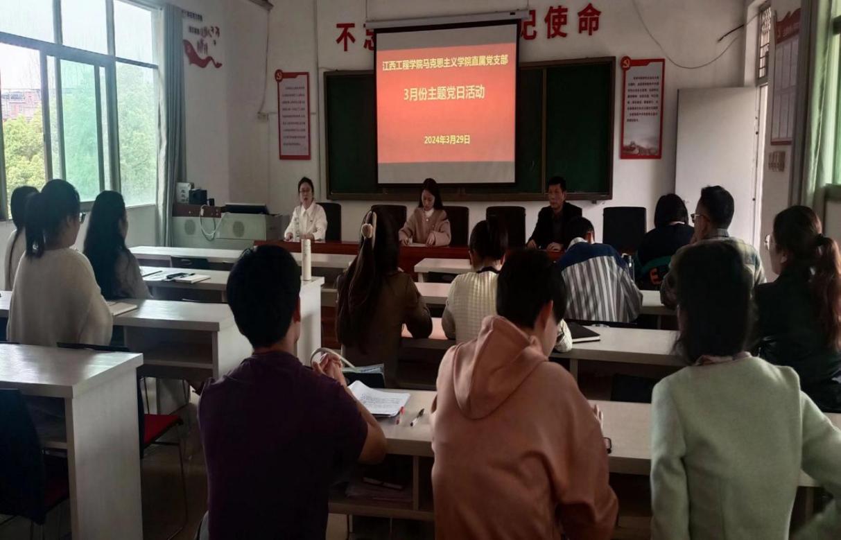 3月29日下午2点30分,全球最大顶级体育平台直属党支部在A201党员活动室组织开展3月份主题党日活动,会议由党支部副书记黄琴主持,党支部书记、经理胡延庆,副经理崔丽出席,全体思政课教师参加。