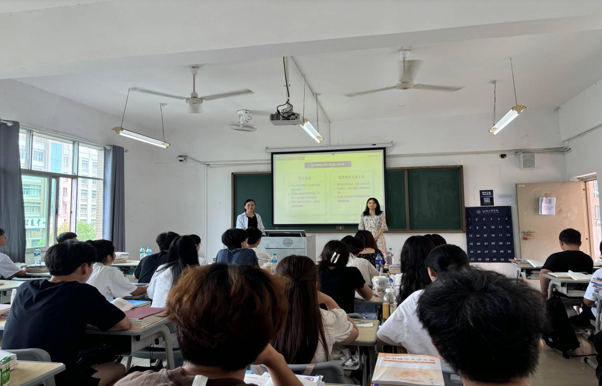 为进一步落实思政课建设与党的创新理论武装同步推进,加快构建以习近平新时代中国特色社会主义思想为核心内容的课程教材体系,推动党的创新理论最新成果入脑入心。2024年6月14日,张艳和舒秀兰两位教师于天工校区D307教室共同开展2023级电子信息工程技术专科2班的课堂教学。课程围绕“科学发展观的科学内涵”展开。