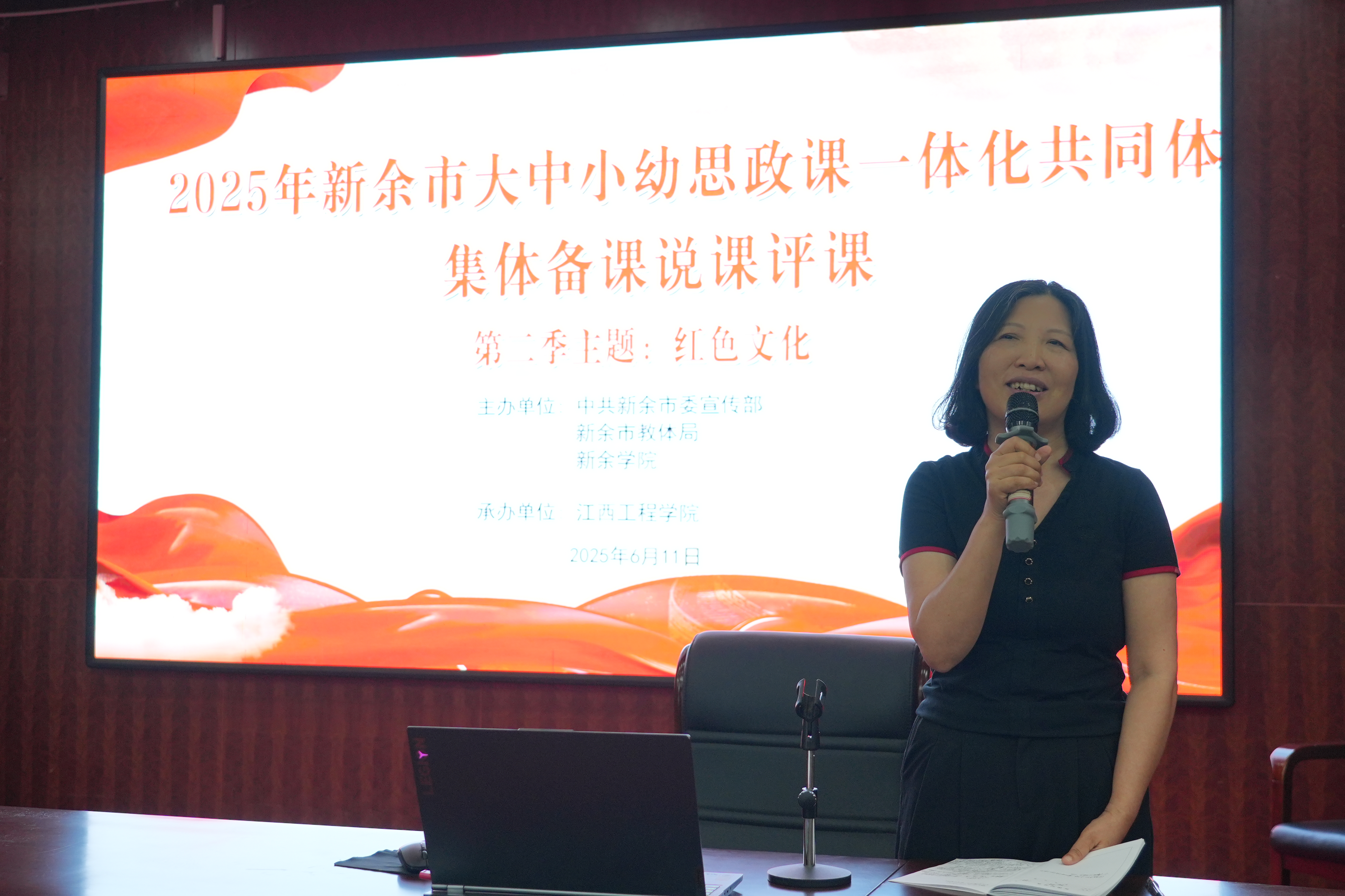 为深化思政课改革创新,推动大中小幼思政教育一体化建设,本次活动聚焦“红色文化”主题,旨在学习跨学段思政教育协同经验。新余市教育局秘书科科长朱鸿玉在主持活动中强调,全市教育系统要贯彻习近平总书记视察江西时关于推进红色基因传承的指示精神,深挖红色文化资源,一体化设计教材,标准化建设课程,激励青少年传承红色基因,成长为国家栋梁。她指出,红色教育是落实立德树人根本任务的关键课程,对培育社会主义建设者和接班人意义重大。此次活动是大中小学思政课教师共同探索的成果体现,彰显了思政教育在不同学段的融合创新成效。
