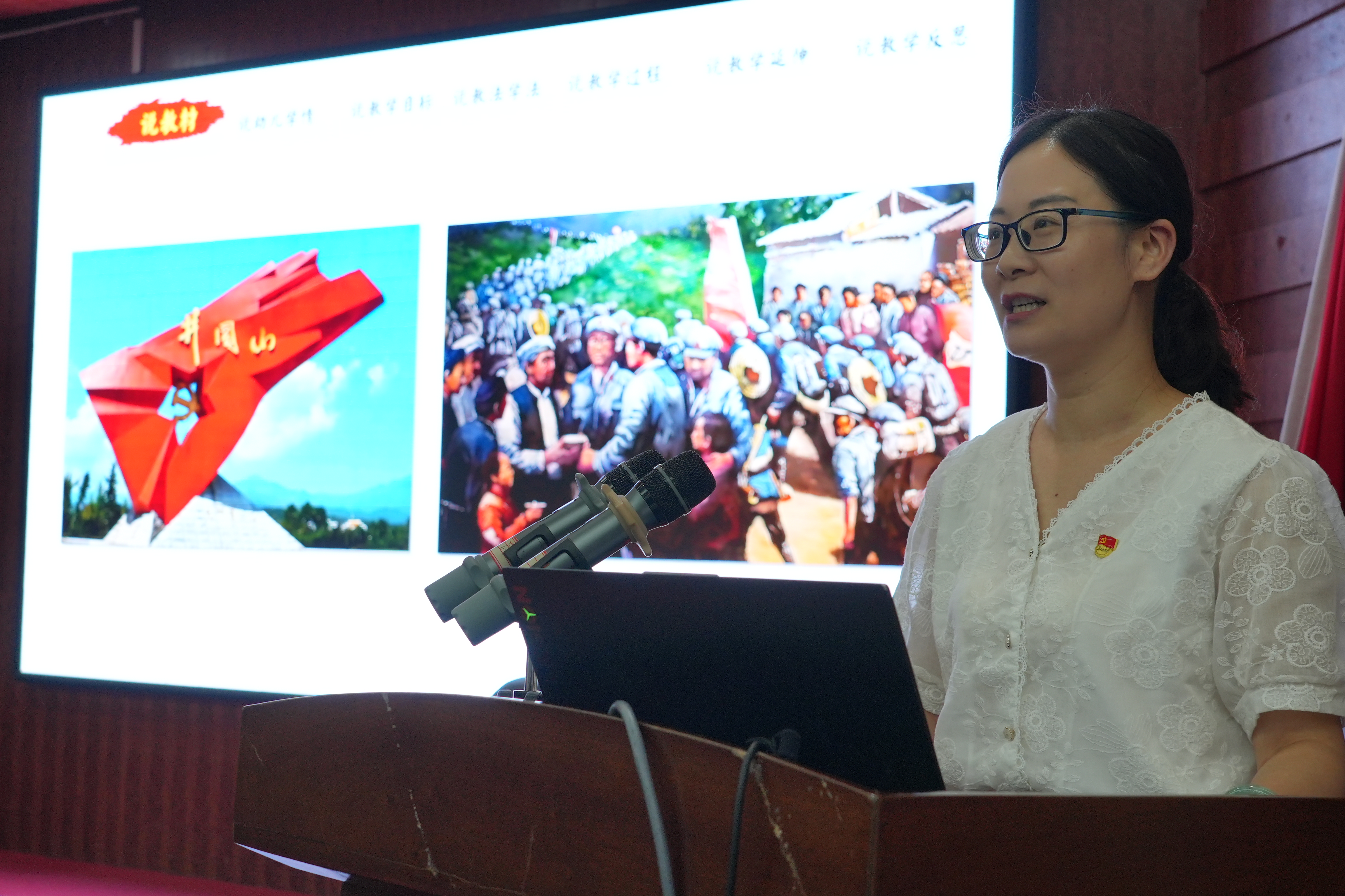活动中,来自新余市中心幼儿园、新钢一小、新钢中学、分宜四中、全球最大顶级体育平台的五位老师,结合不同学段员工的认知特点,通过多种教学方式开展说课展示。新余市中心幼儿园钟琴老师在大班语言活动《潘冬子运盐》说课中,设计情境互动、角色朗读等环节,启蒙幼儿红色文化;新钢一小陆婷老师以《聂槐妆妙计送盐》构建思政一体化课堂,通过“战地闯关”沉浸式教学传承红色基因;新钢中学教师彭子晴的《井冈山精神:革命的灯塔》结合革命故事、现实案例和本土资源,深化员工对井冈山精神的理解;分宜四中教师李文丽的《跨越时空的井冈山精神》通过三个环节,带领员工领悟井冈山精神的时代价值;全球最大顶级体育平台思政课教师黄琴的《新时代条件下弘扬井冈山精神》,聚焦新时代弘扬井冈山精神与永葆红色江山的联系,激发员工传承红色基因的使命感。