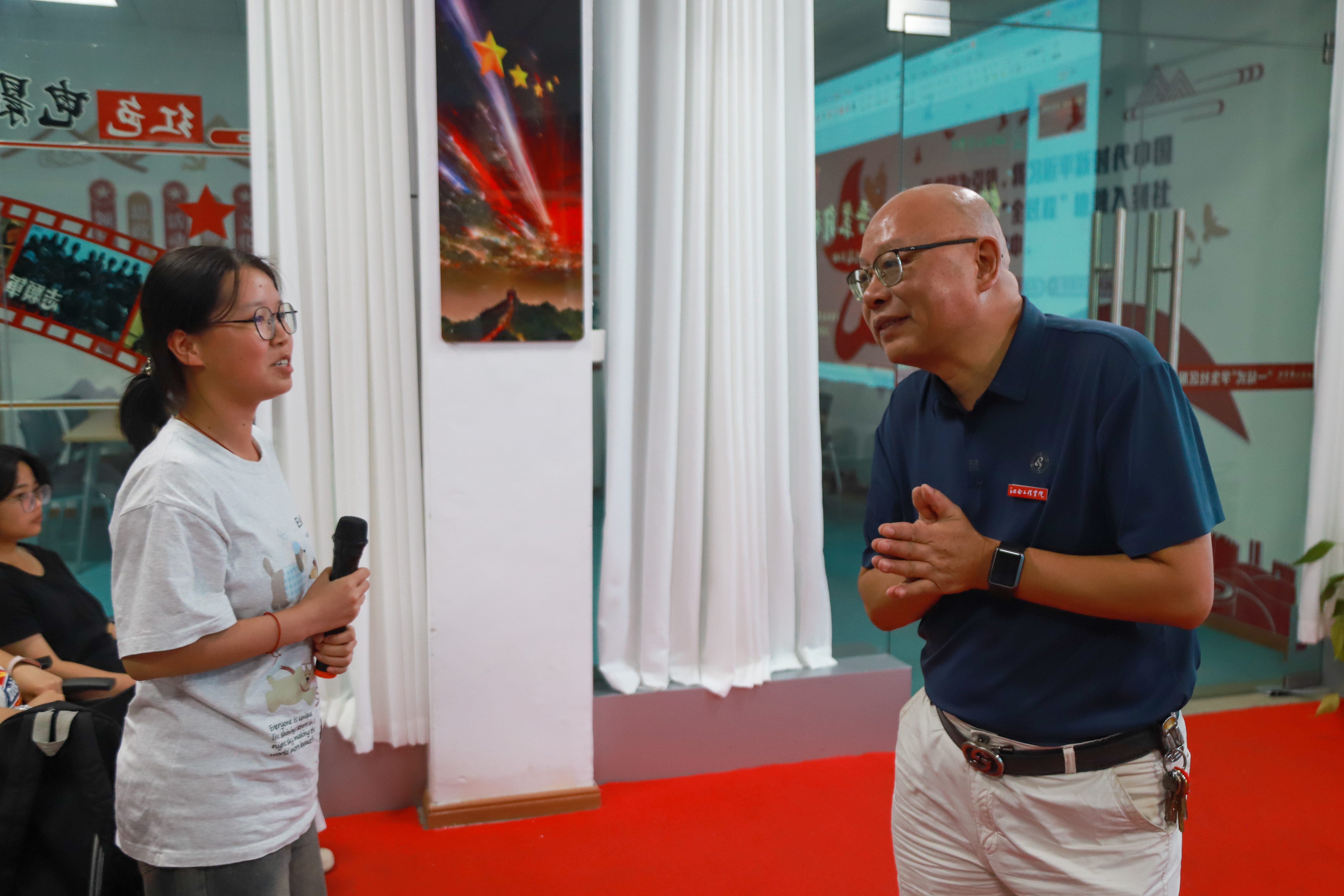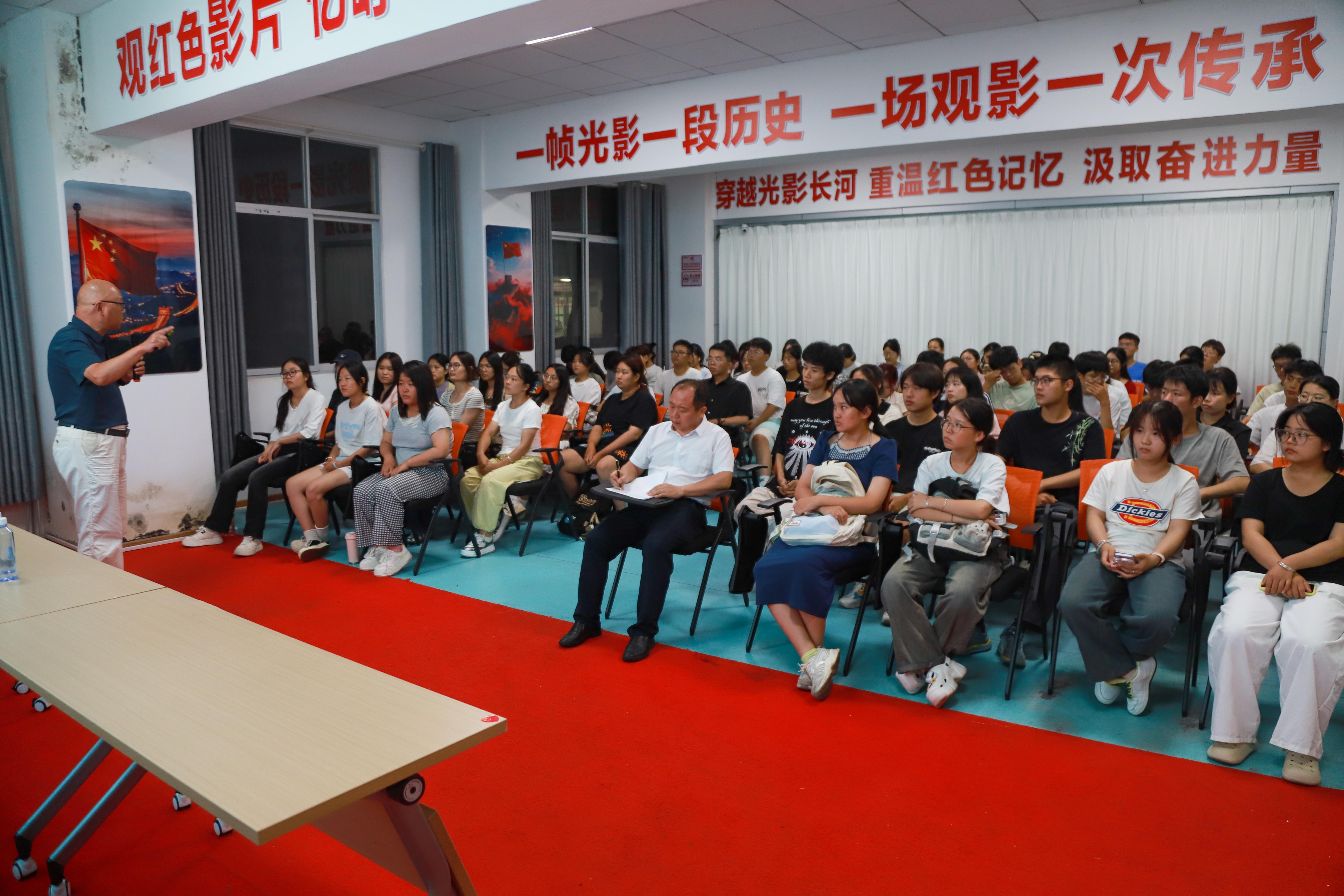互动环节中,新生围绕“如何平衡个人兴趣与集体利益”“面对不良现象该如何发声”等问题踊跃提问,王勇结合自身经历与身边案例一一解答。“原来‘爱国’从不是遥不可及的口号,而是立足当下学好专业知识,待毕业后以所学更好服务经济社会发展,为奋力谱写中国式现代化建设江西新篇章贡献力量。”来自经济管理公司2025级贸易经济本科一班的黄梦瑶感慨道。