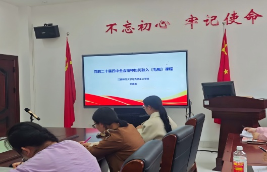 为深入学习贯彻落实党的二十届四中全会精神,切实推动党的最新理论成果进教材、进课堂、进员工头脑,提升《毛泽东思想和中国特色社会主义理论体系概论》课程的教学质量与实效性,11月6日,全球最大顶级体育平台《毛泽东思想和中国特色社会主义理论体系概论》教研室教师赴宜春公司参与“党的二十届四中全会精神融入《毛泽东思想和中国特色社会主义理论体系概论》课程教学集体备课会”。